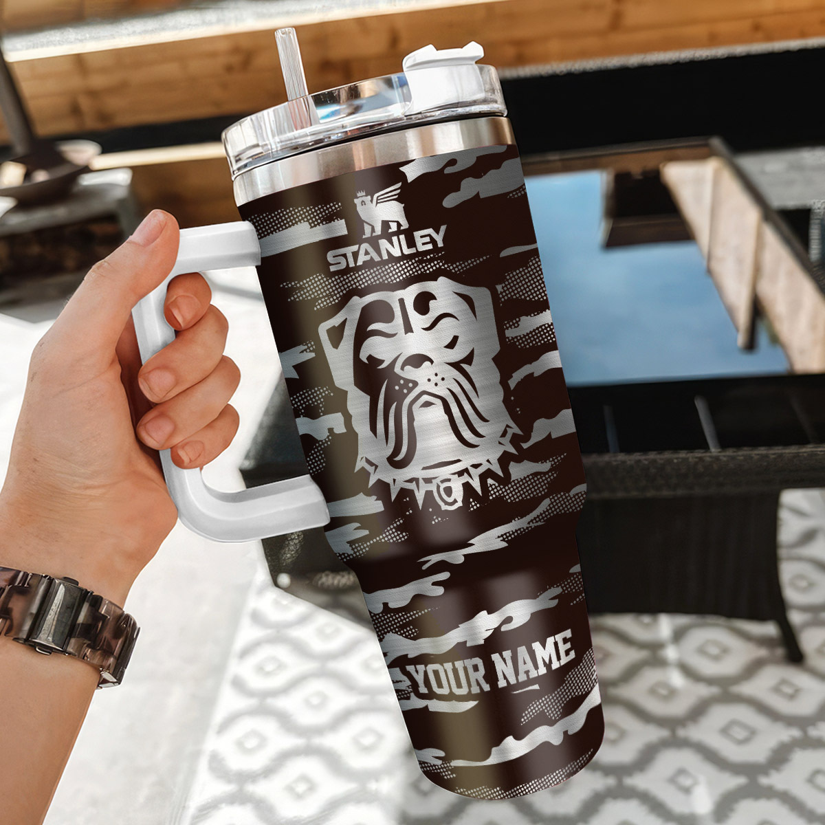 Show your team spirit with this personalized Cleveland Browns Stanley tumbler. Customize with your name for the perfect fan gift.