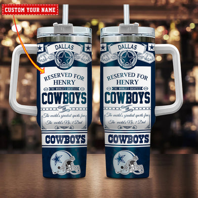 Show off your team spirit with this customizable Dallas football travel mug. Perfect for fans, it’s an ideal gift for any occasion.