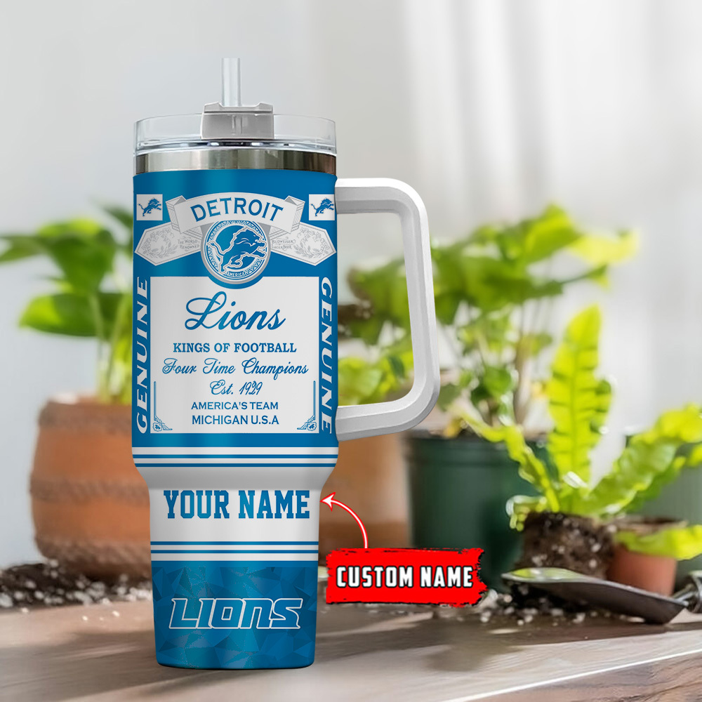 Show your team pride with this Detroit Lions tumbler. Keep drinks hot or cold for hours. Customize it with your name for a personal touch.