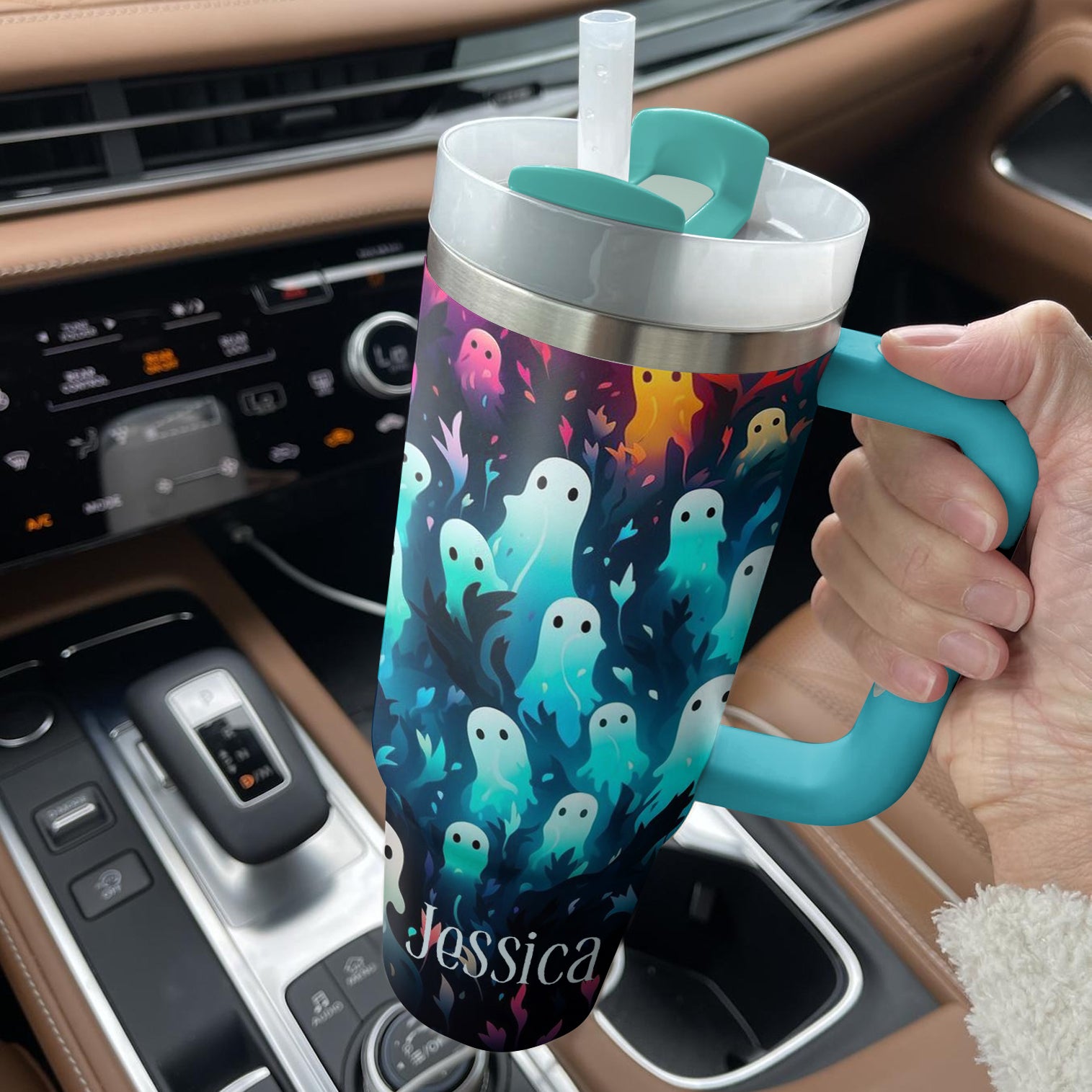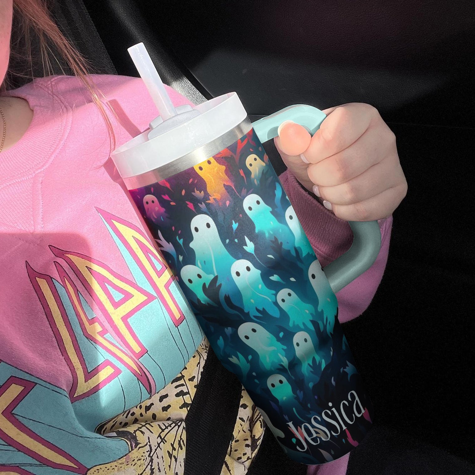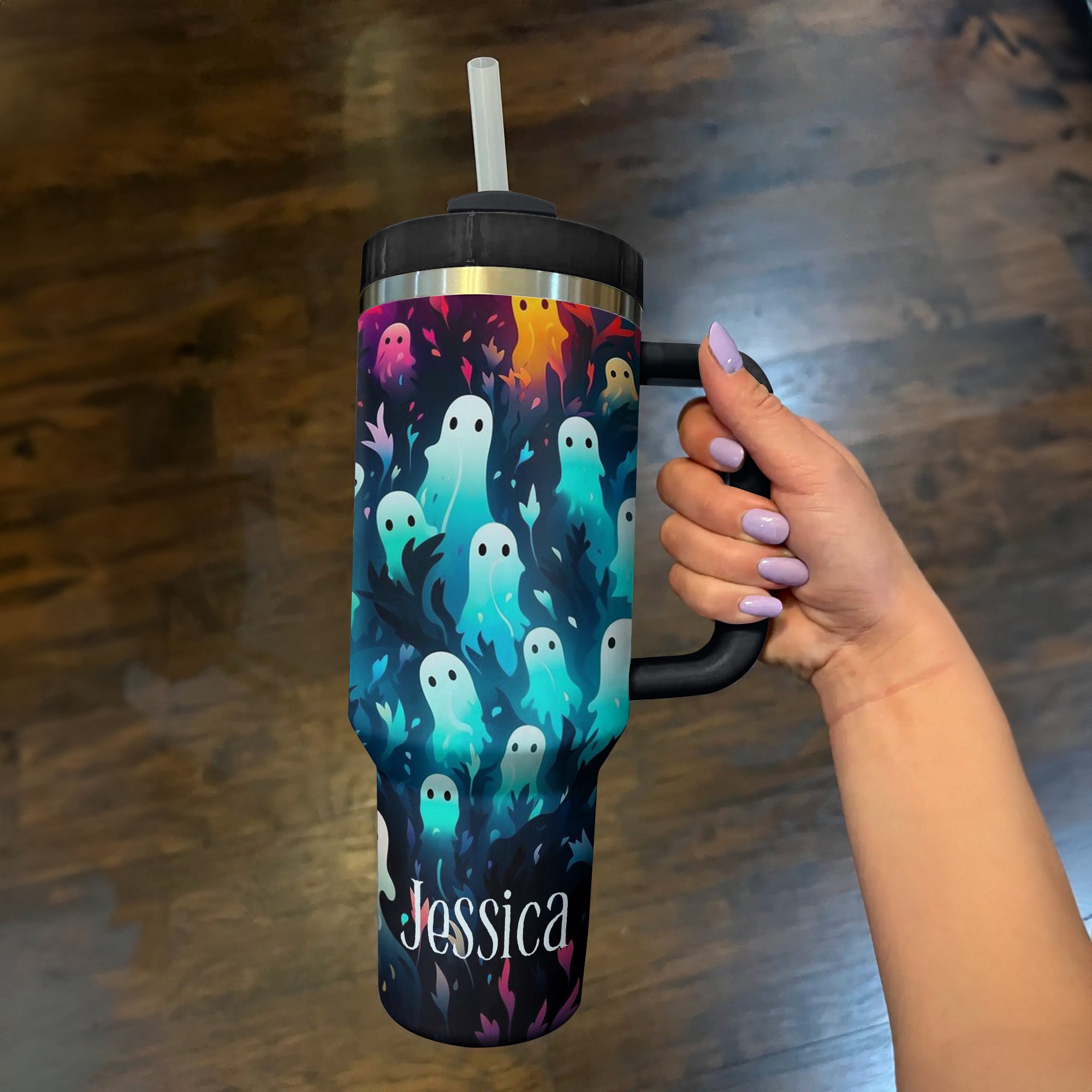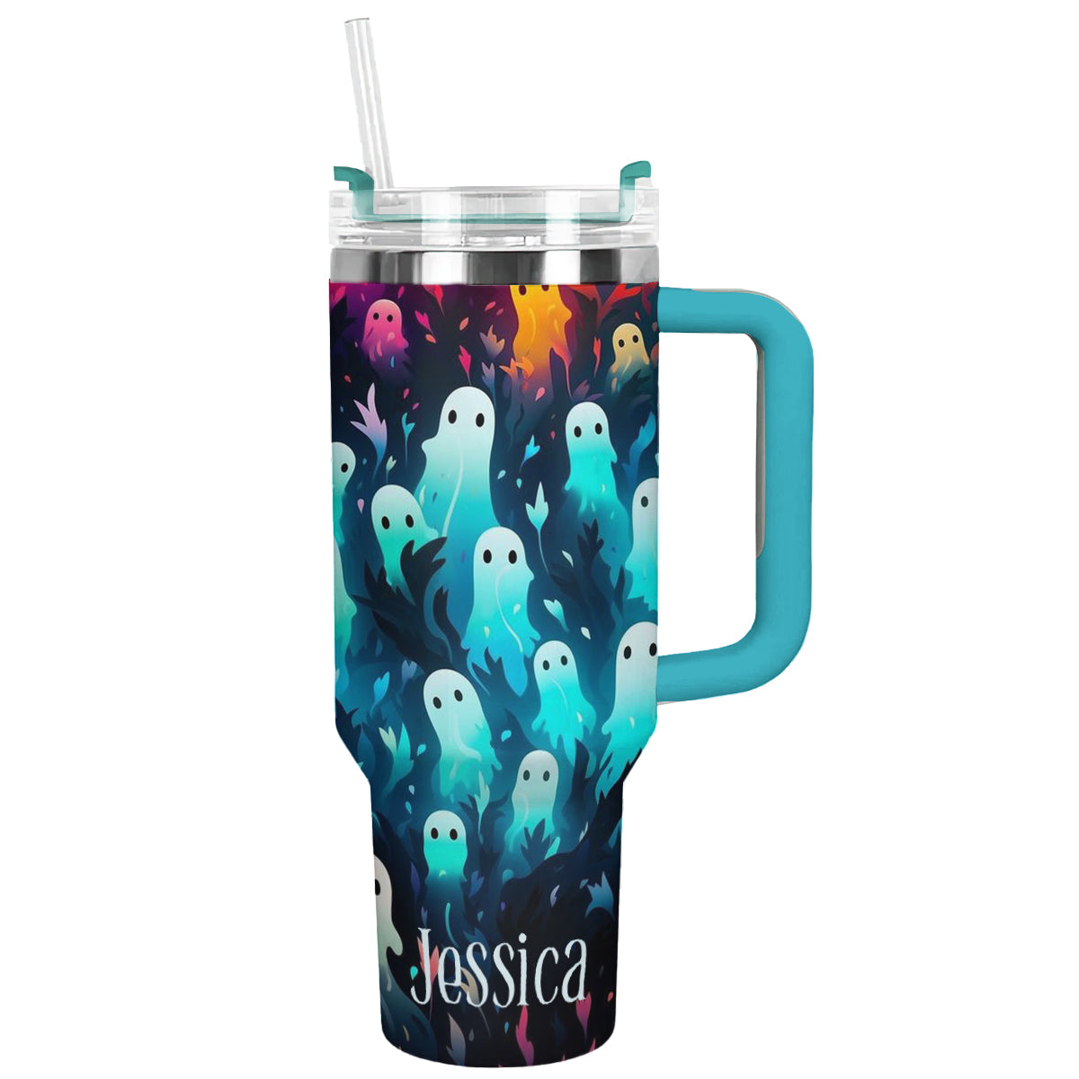 Sip in style with this personalized ghost-themed tumbler. Perfect for keeping your drinks hot or cold while adding a spooky touch to your day.