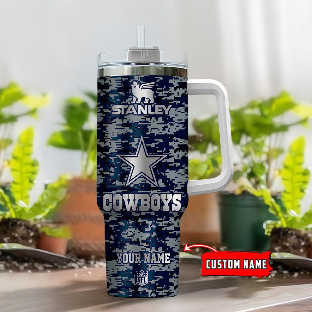 Show your team pride with this personalized NFL Cowboys Stanley tumbler mug. Customize it with your name for the ultimate fan experience.