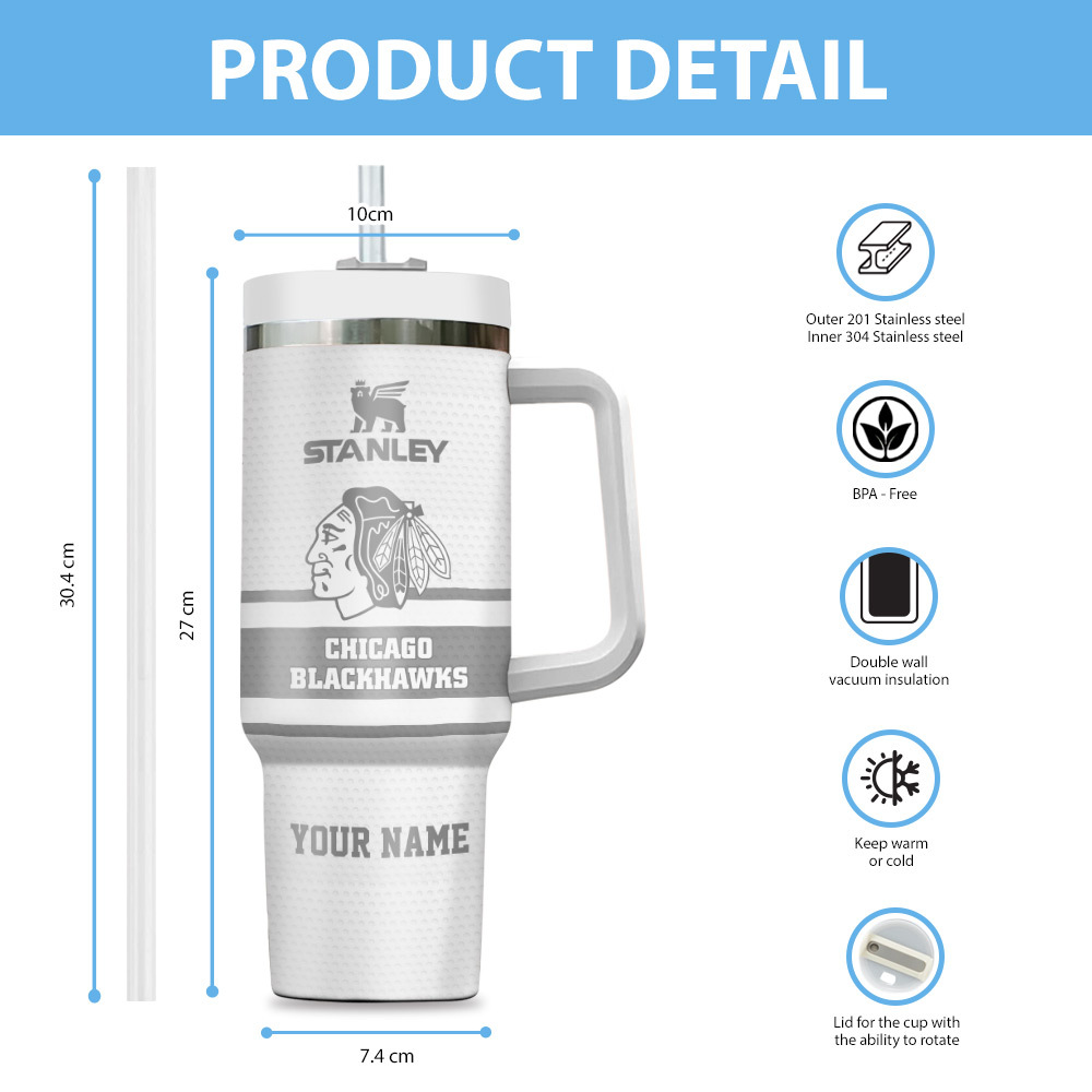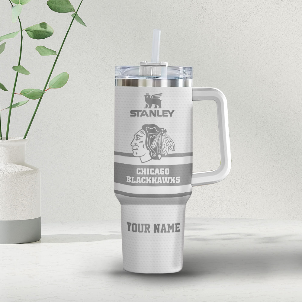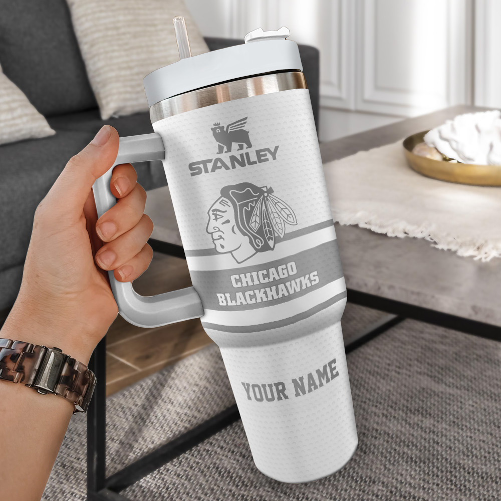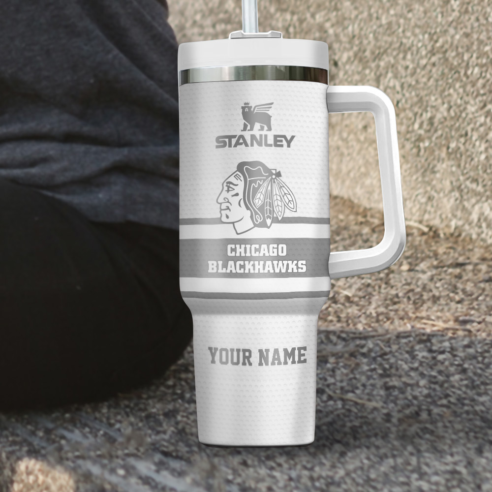 Show your team pride with this custom NHL Chicago Blackhawks Stanley tumbler. Personalize it with your name for the ultimate fan experience.