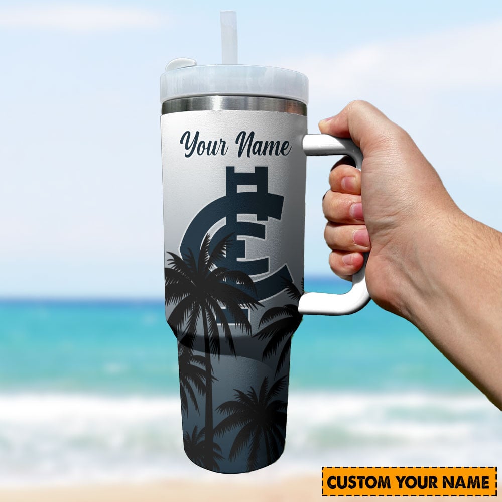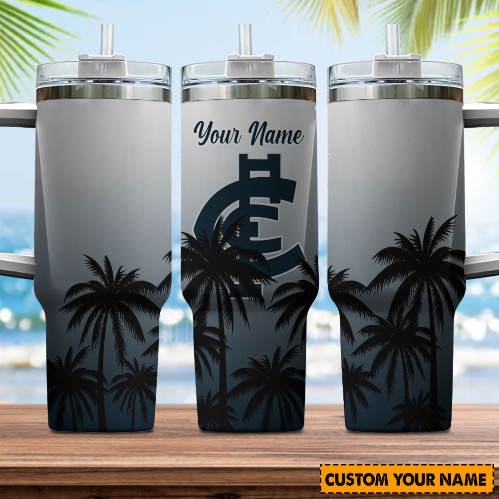 Stay refreshed with our customizable travel tumbler featuring a stylish palm tree design. Personalize with your name for a unique touch!