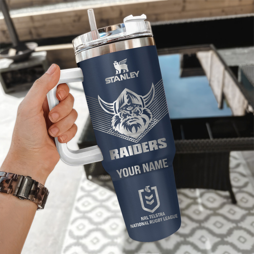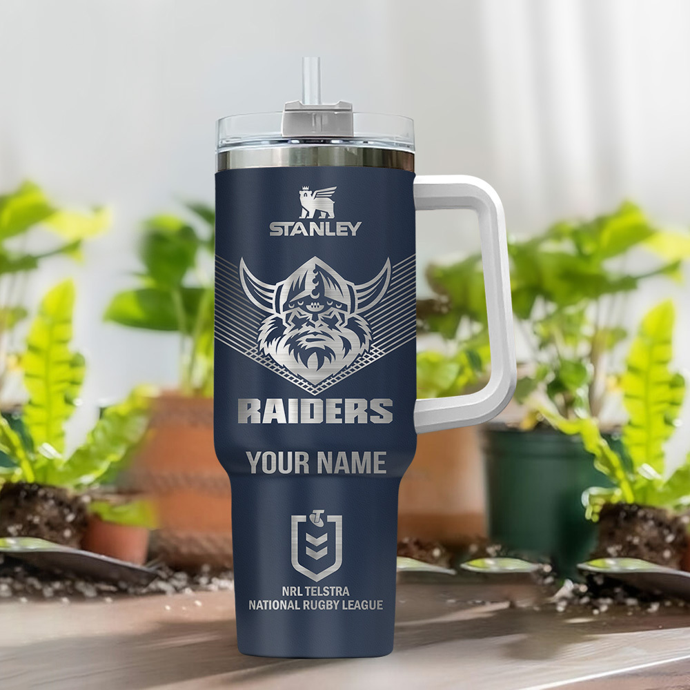 Show off your team spirit with this customized Stanley Raiders tumbler. Perfect for keeping drinks hot or cold, with your name engraved for a personal touch.