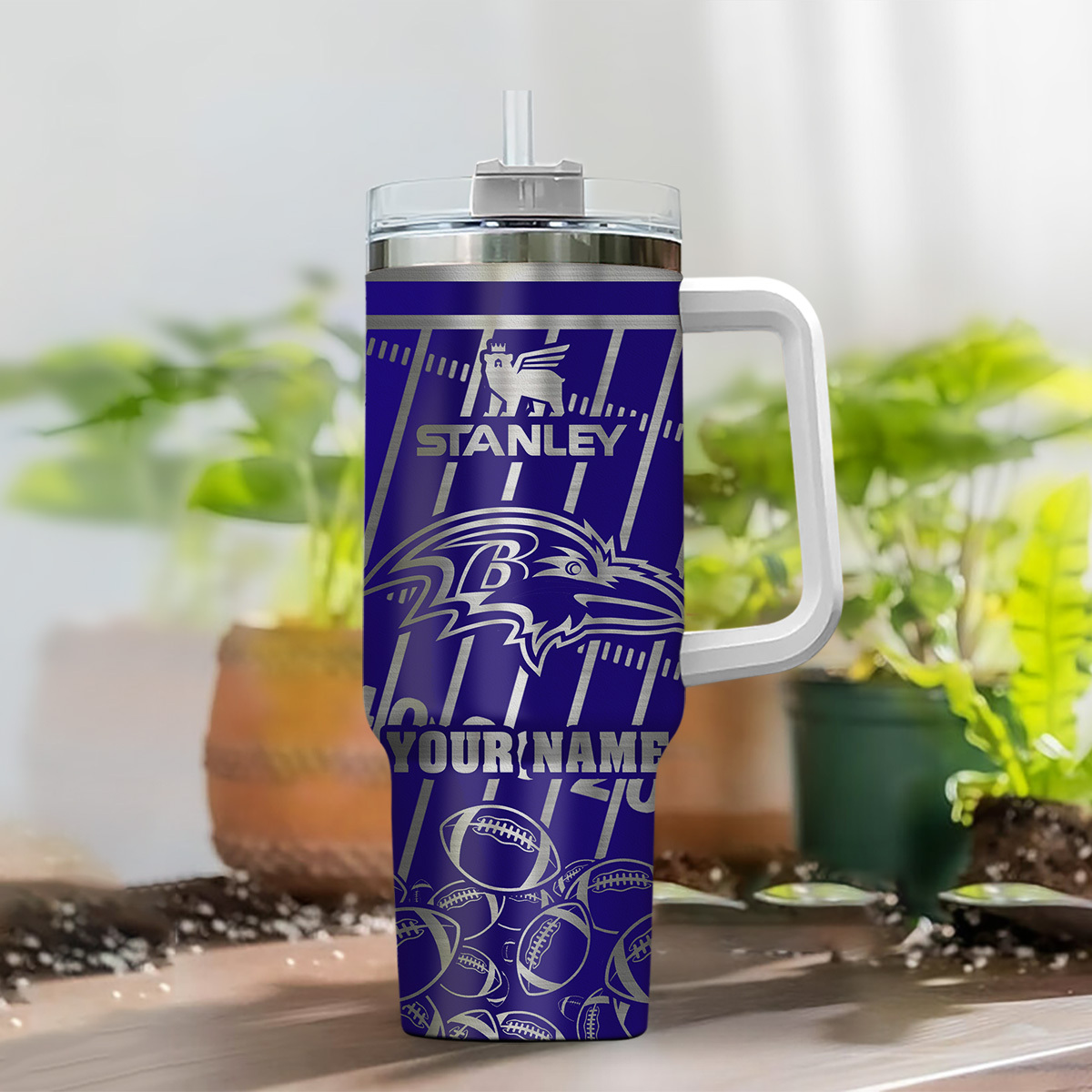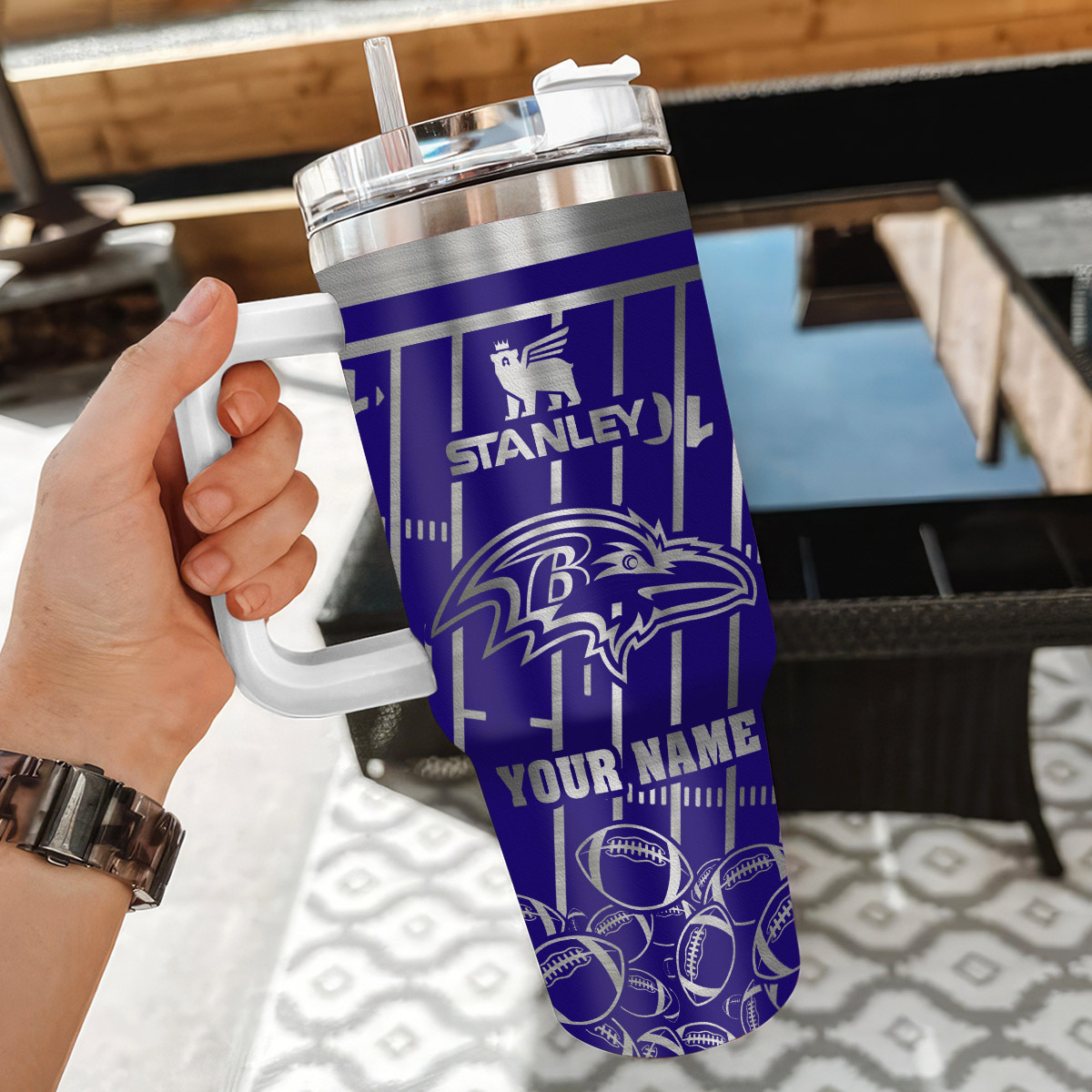 Show off your team spirit with this personalized Stanley tumbler, featuring your favorite NFL team logo. Keeps drinks hot or cold for hours.