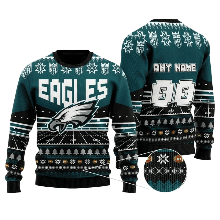 Personalized Ugly Christmas Sweater Philadelphia-Eagles, Fly Eagles Fly Dark Green/Black Custom Name And Number Gift For Football Fan Ugly Xmas Jumper