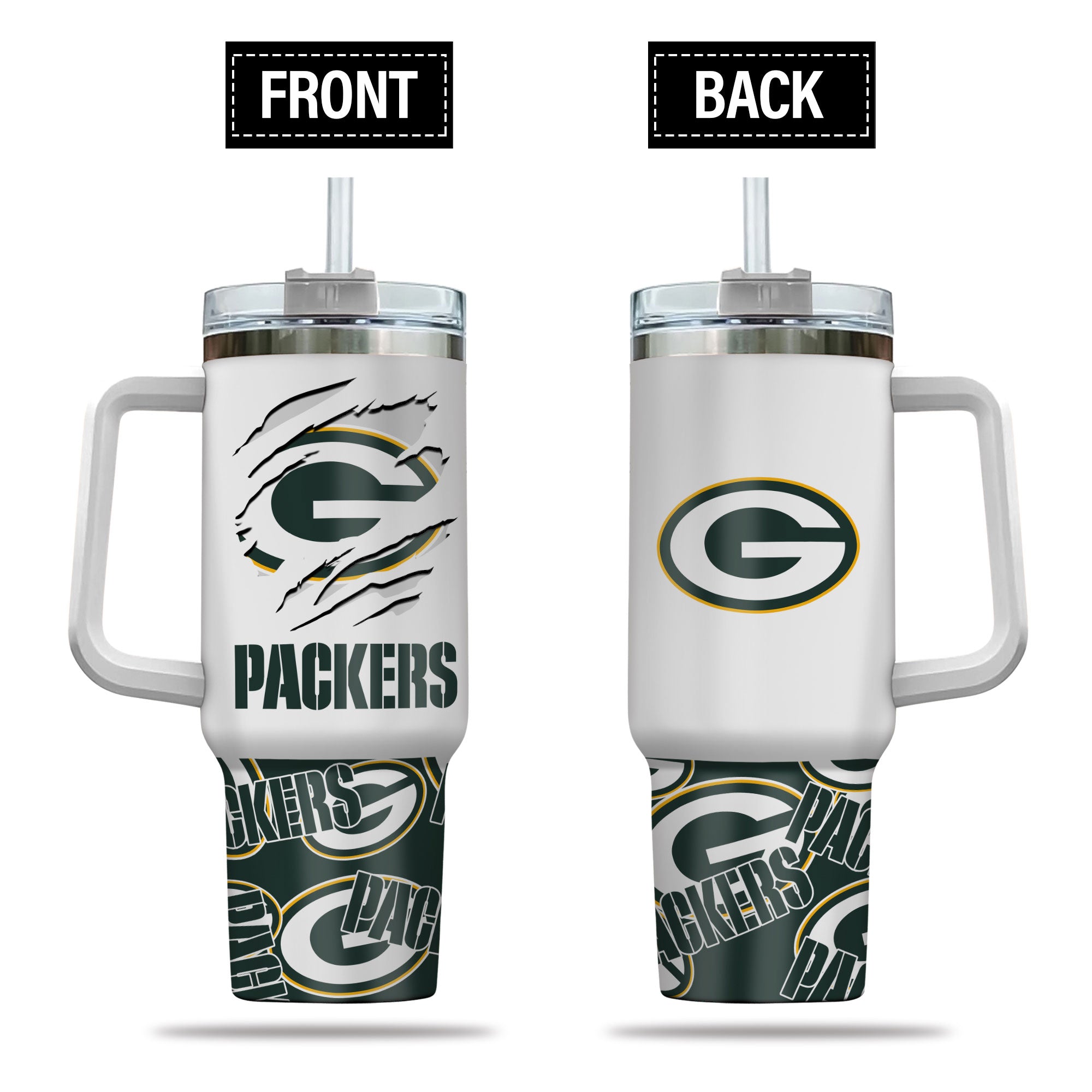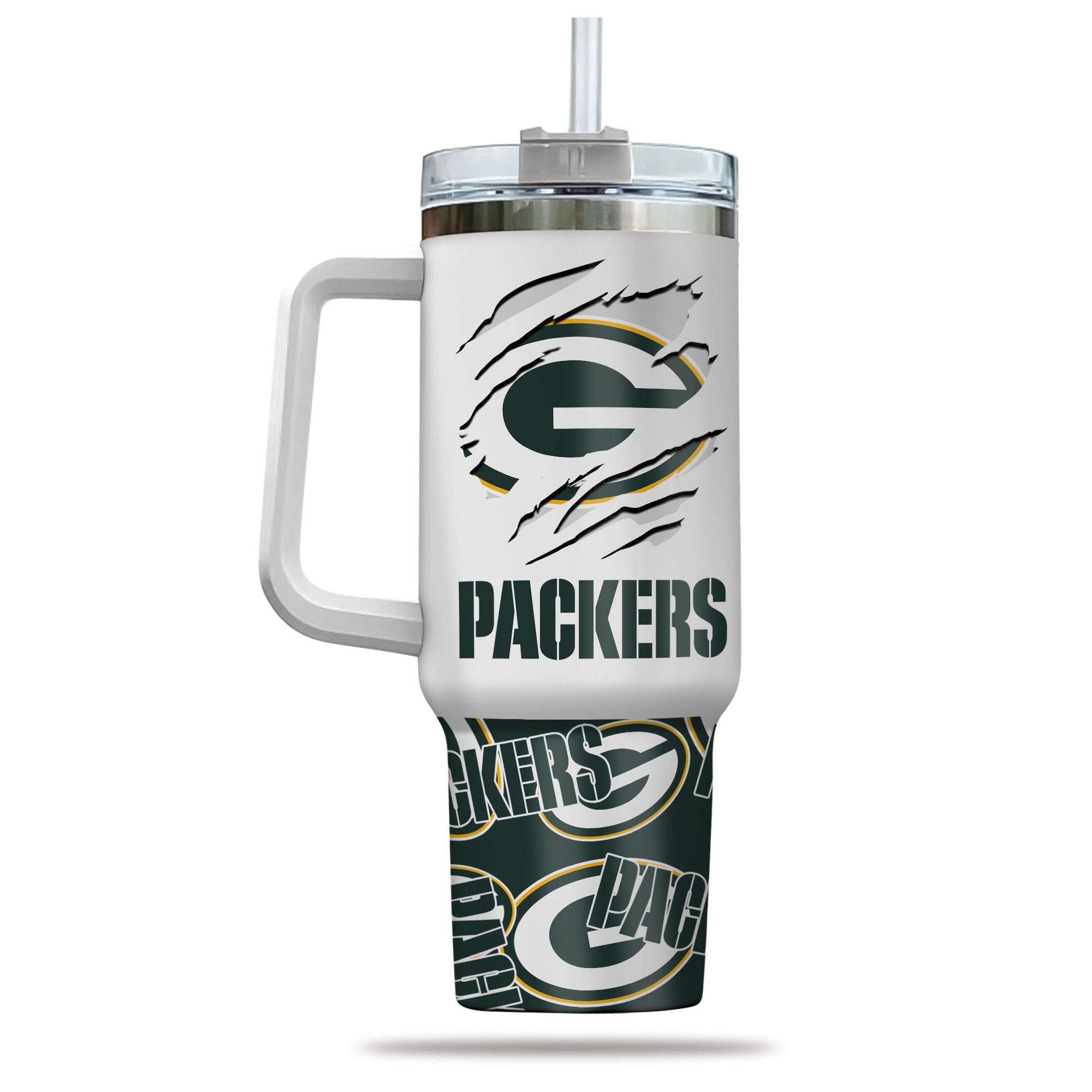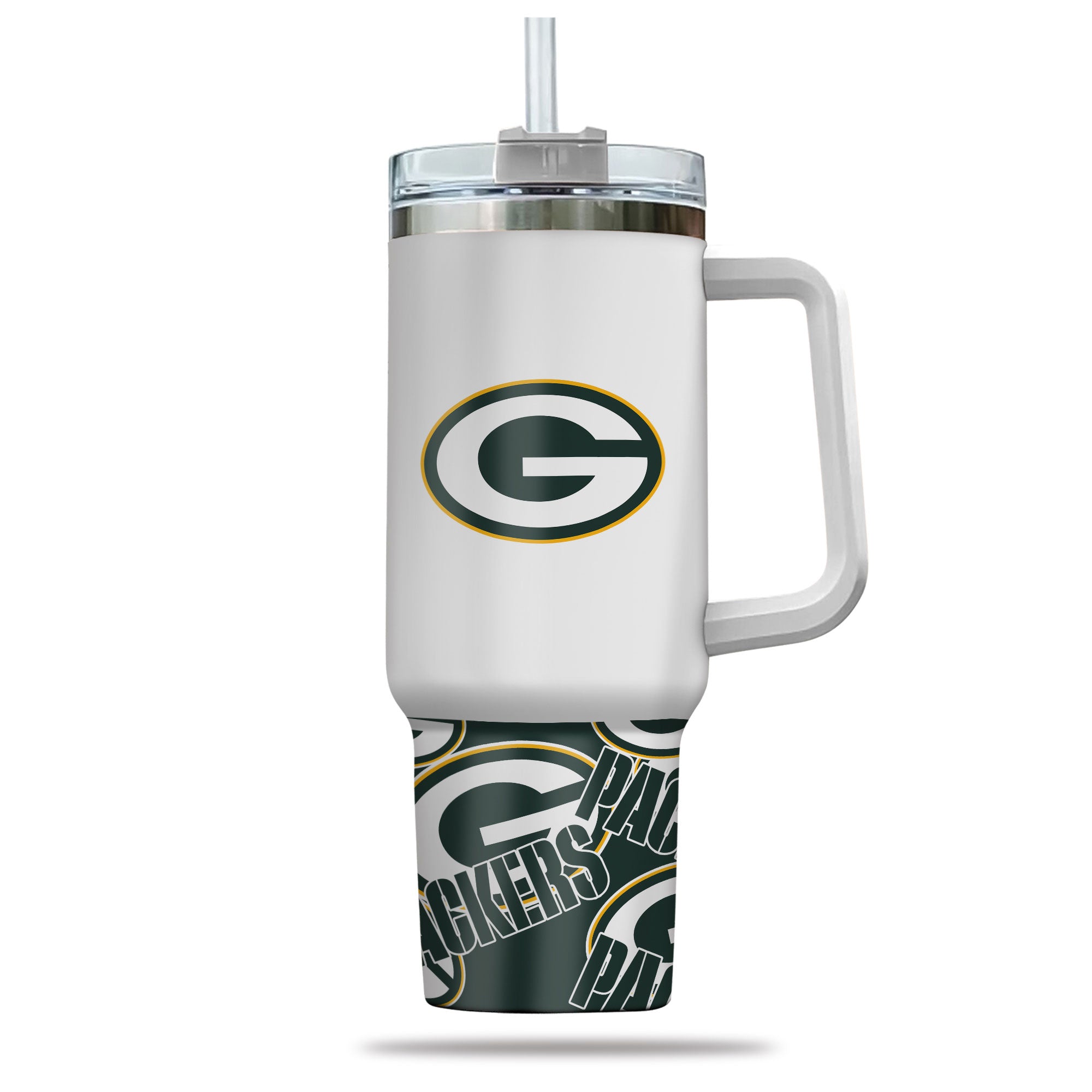 Stay refreshed with this durable Packers tumbler featuring a convenient handle and straw. Perfect for game days or everyday use.