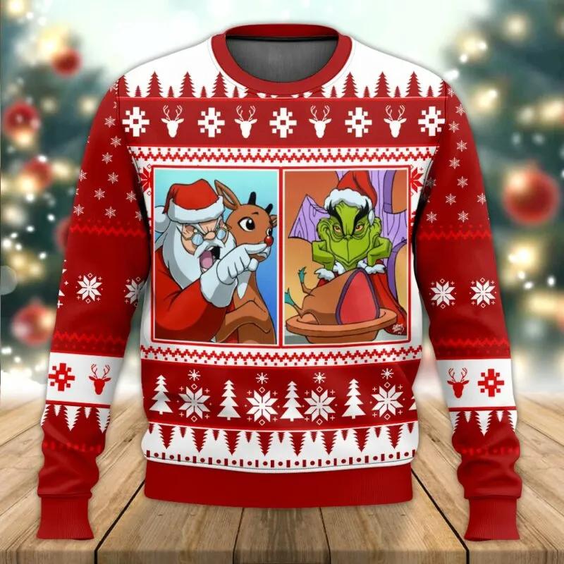 Santa Claus Grinch Yelling Meme Ugly Sweater, Grinch Holiday Sweater – Gowgowstore.com