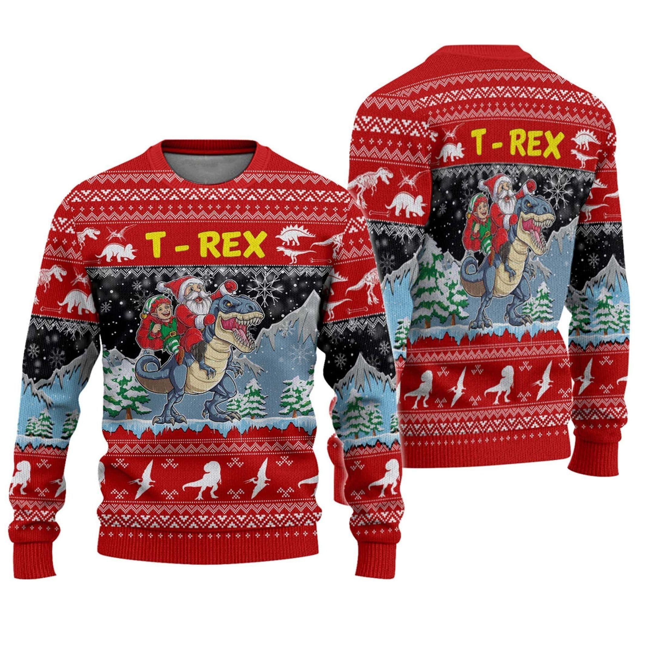 Santa Riding T-rex Ugly Sweater, Santa Riding T-rex Christmas Shirt