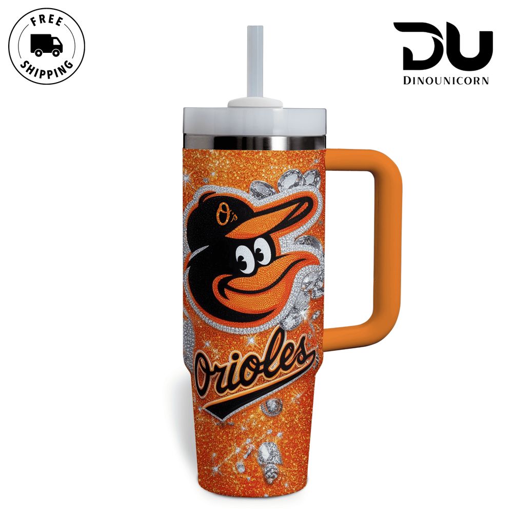 Show off your team spirit with this dazzling Orioles tumbler. Features a sturdy handle and straw, ideal for on-the-go hydration. Enjoy free shipping!
