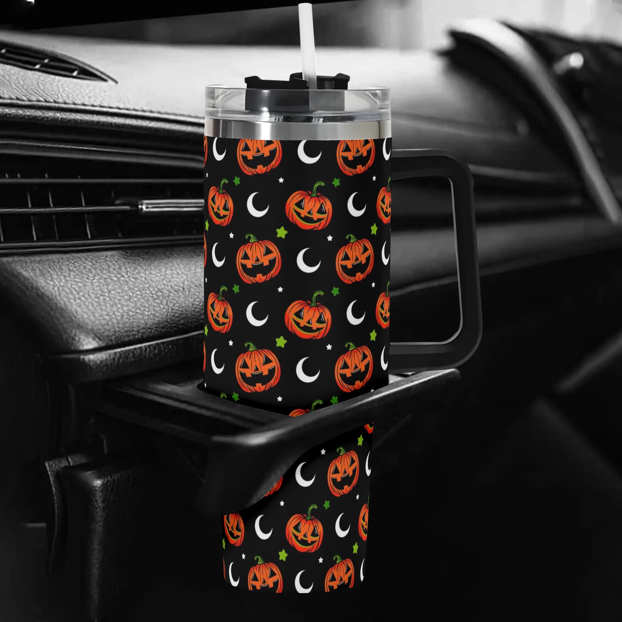 Enjoy your favorite beverage on the go with this festive pumpkin travel mug. Perfect for Halloween lovers, it keeps drinks hot or cold for hours.