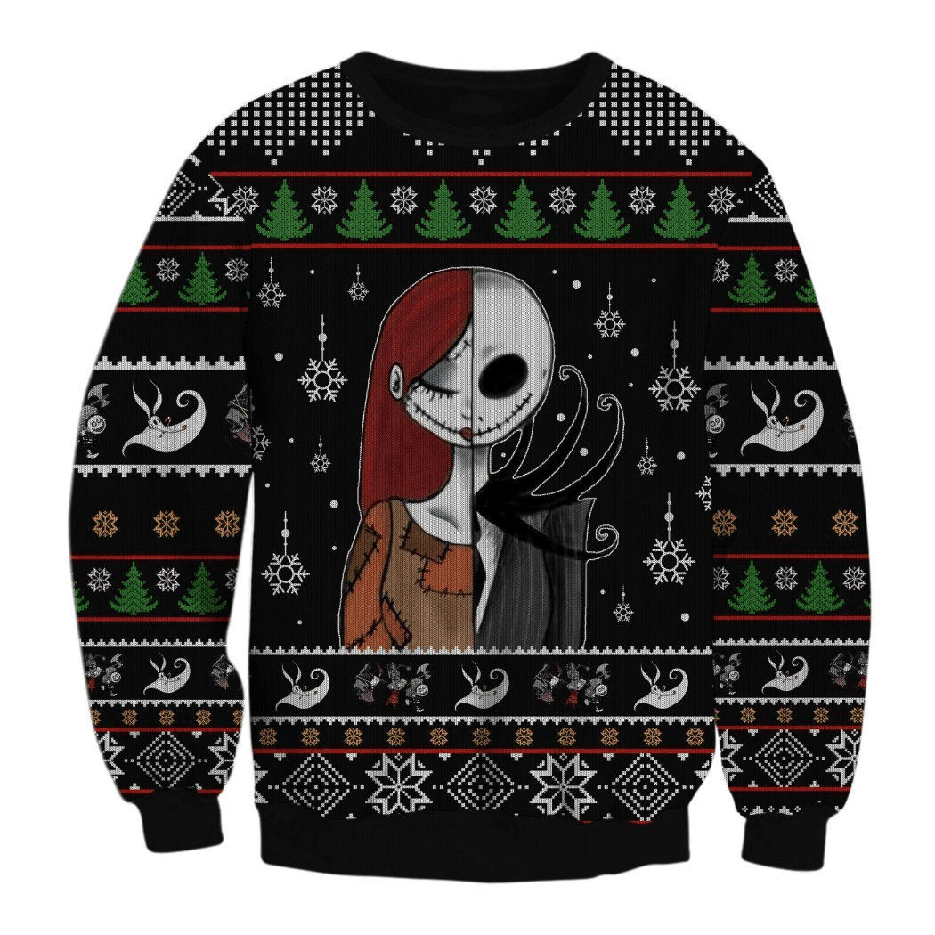 The Nightmare Before Christmas Jack Skellington And Sally Ugly Sweater Gifts, Jack Skellington Gift Fan Ugly Sweater