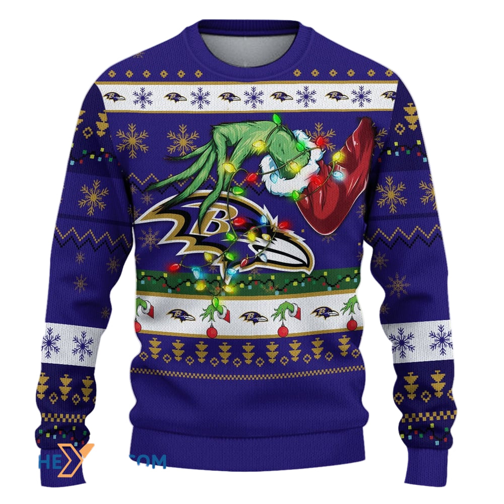 Ugly Christmas Sweater Baltimore-Ravens, Go Baltimore-Ravens Grinch Christmas Snowflakes Navy