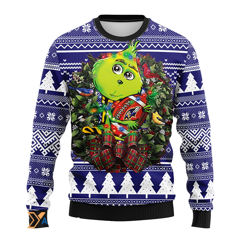 Ugly Christmas Sweater Baltimore-Ravens, Grinch Blue/White