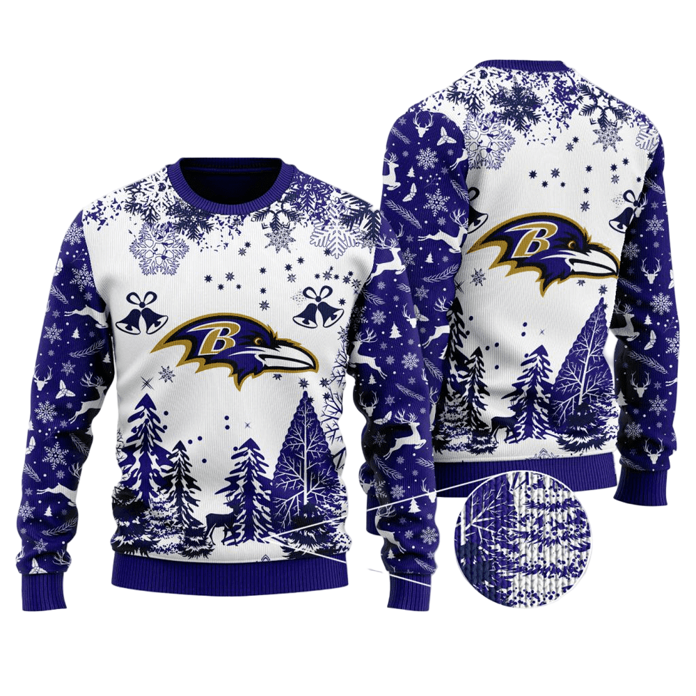 Ugly Christmas Sweater Baltimore-Ravens, Play Like A Raven White/Violet