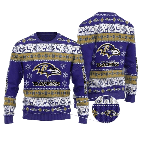 Ugly Christmas Sweater Baltimore-Ravens, Ravens Flock Violet/White/Gold