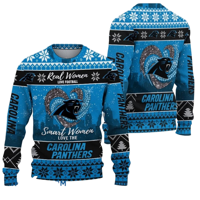 Ugly Christmas Sweater Carolina-Panthers, Grinch Christmas Carolina-Panthers In Heart Snowflakes City Shadow Navy