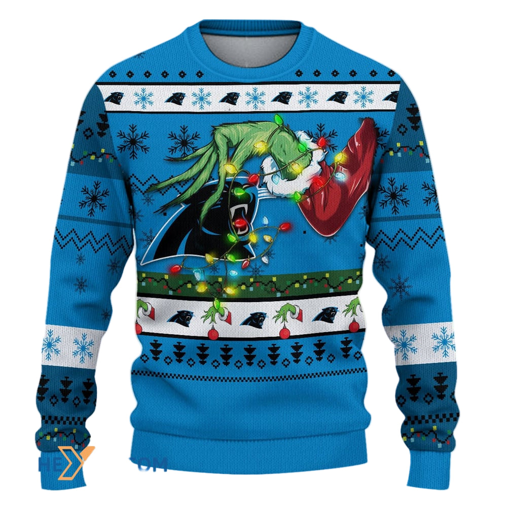 Ugly Christmas Sweater Carolina-Panthers, Keep Pounding Grinch Christmas Snowflakes Navy