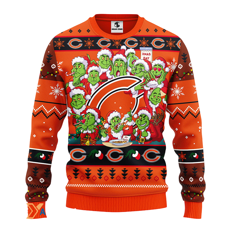 Ugly Christmas Sweater Chicago-Bears, 12 Grinch Brown/Orange/Black