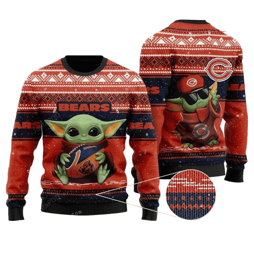 Ugly Christmas Sweater Chicago-Bears, Baby Yoda Orange/White/Blue