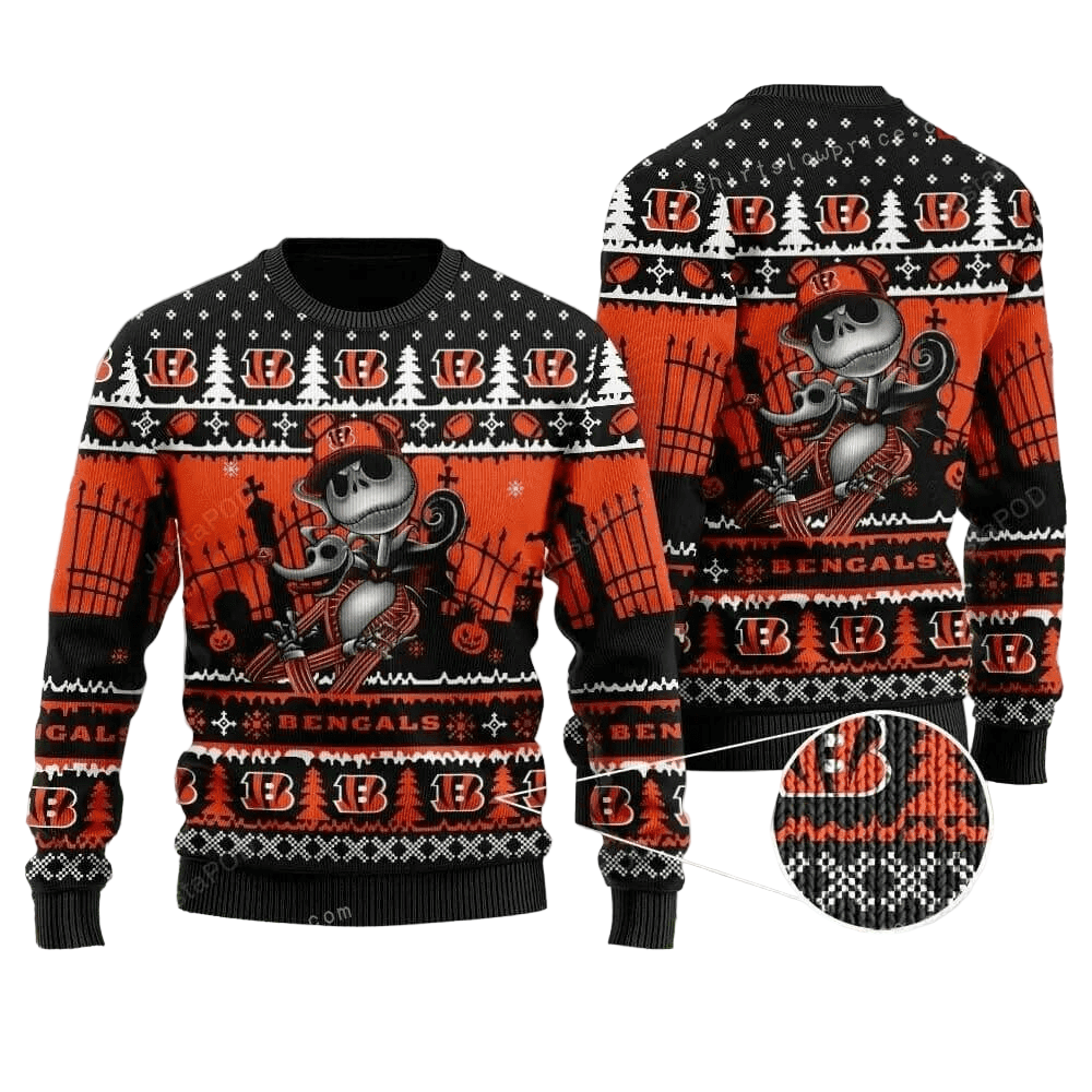Ugly Christmas Sweater Cincinnati, Skellington Orange/Brown