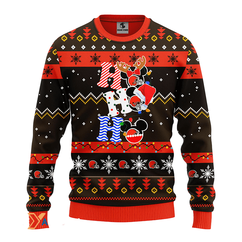 Ugly Christmas Sweater Cleveland-Browns, HoHoHo Graphics Mouse Black/Orange/Brown