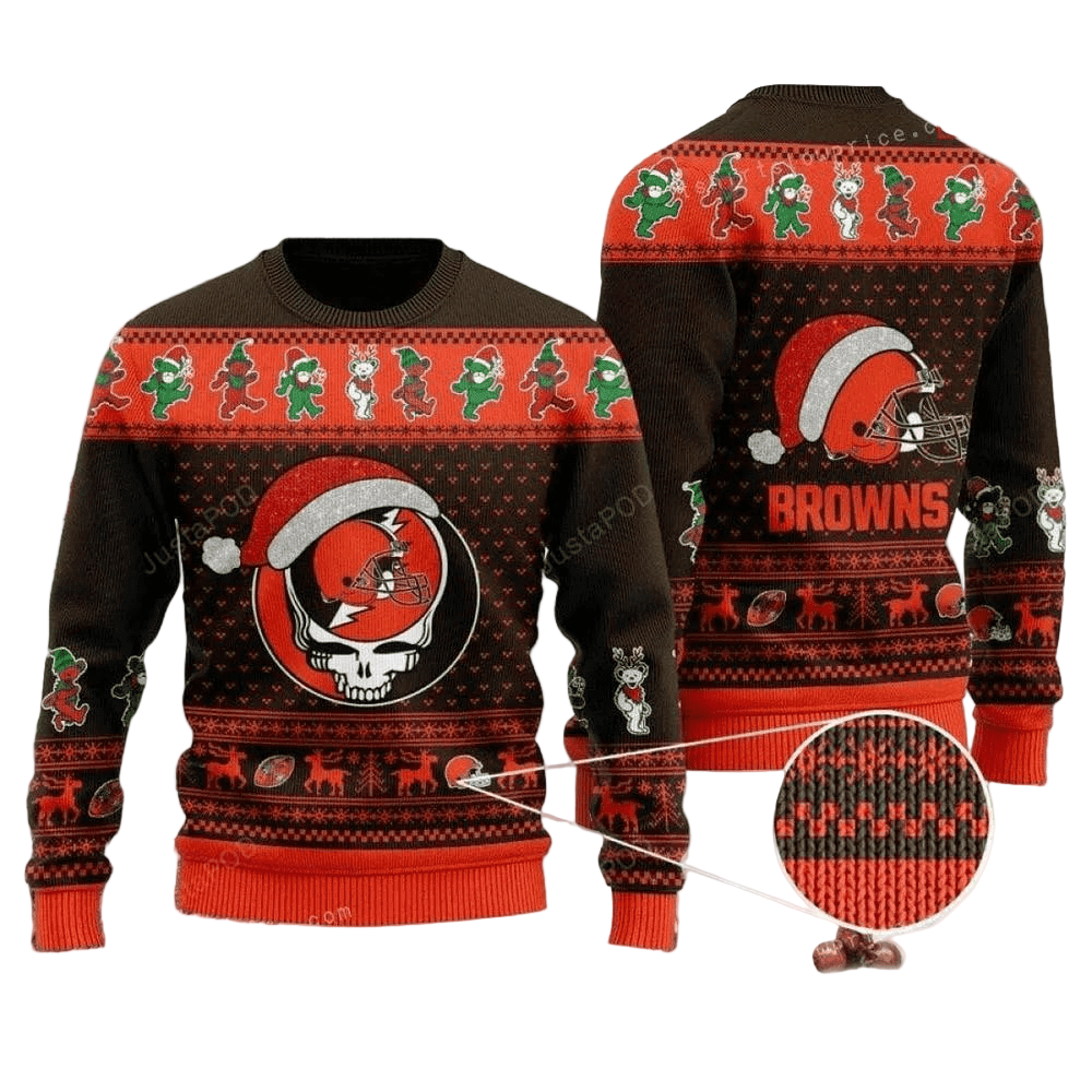 Ugly Christmas Sweater Cleveland-Browns, Skull Brown/Orange
