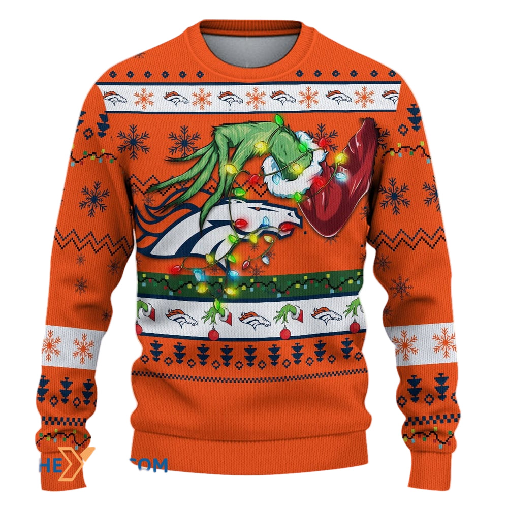 Ugly Christmas Sweater Denver-Broncos, United In Orange Grinch Christmas Snowflakes Orange