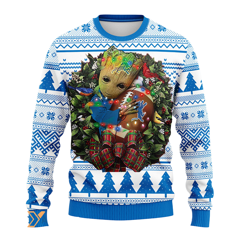 Ugly Christmas Sweater Detroit-Lions, Graphic Tree Blue/White
