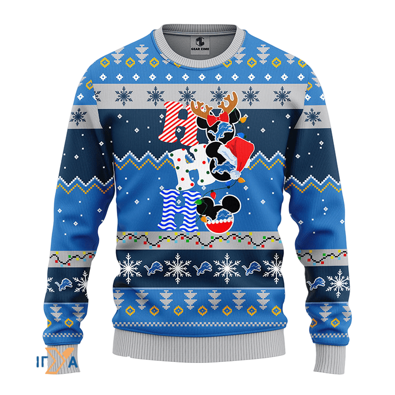 Ugly Christmas Sweater Detroit-Lions, HoHoHo Graphics Mouse Blue/Grey