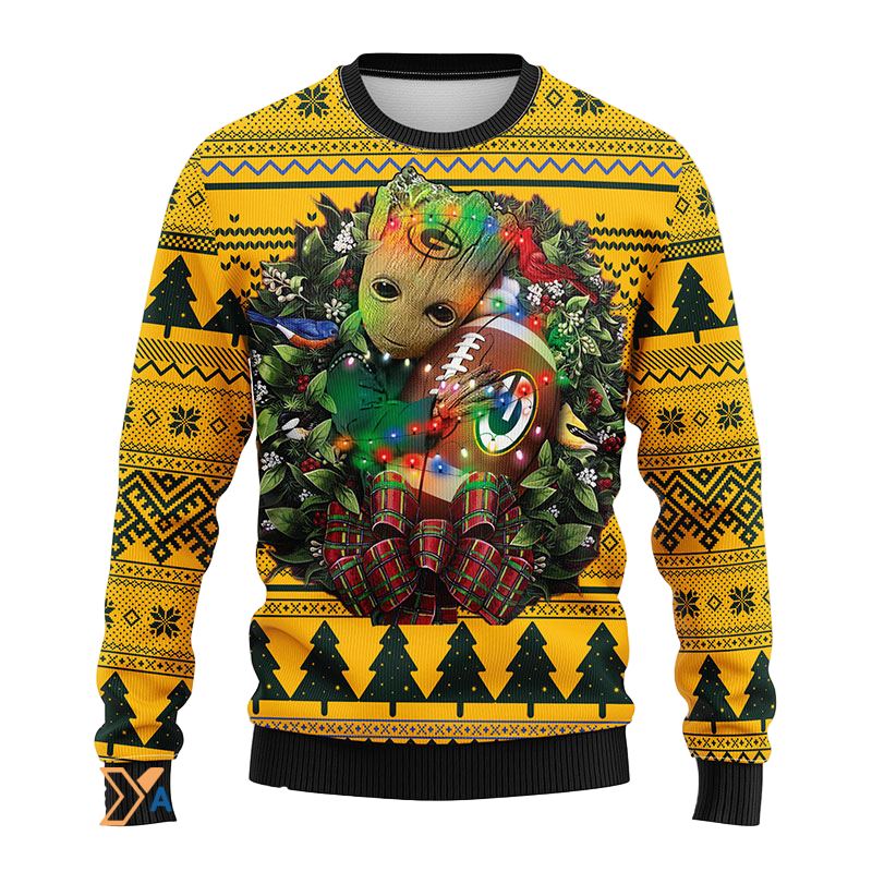 Ugly Christmas Sweater Green-Bay-Packers, Graphic Tree Green/Yellow