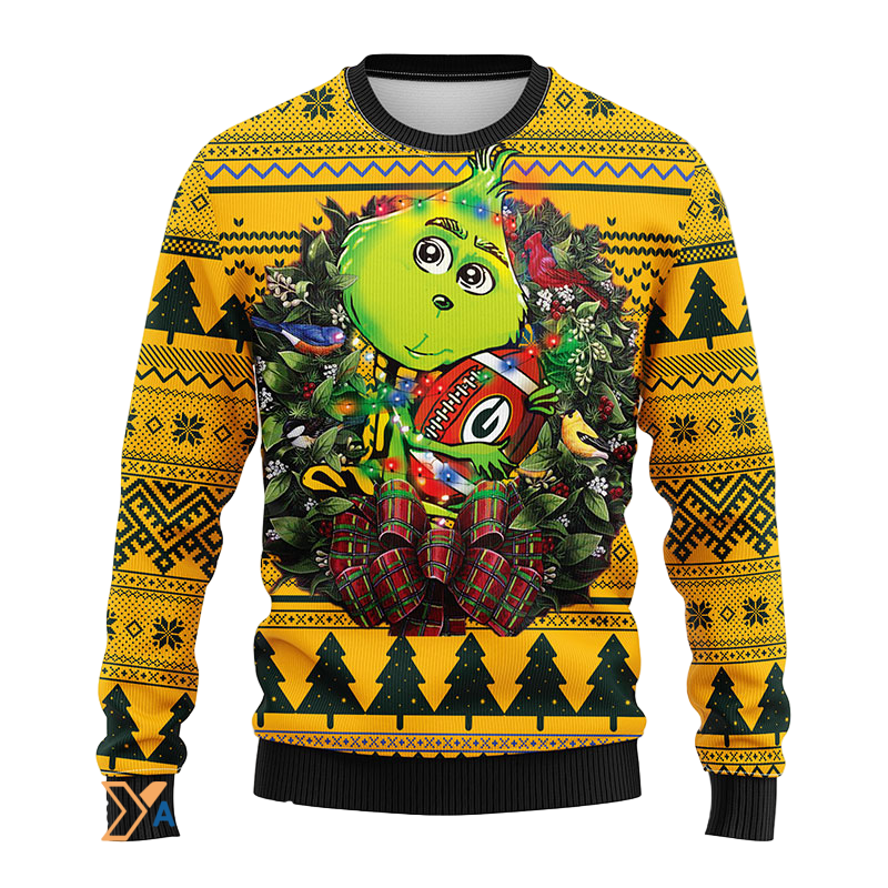 Ugly Christmas Sweater Green-Bay-Packers, Grinch Green/Yellow