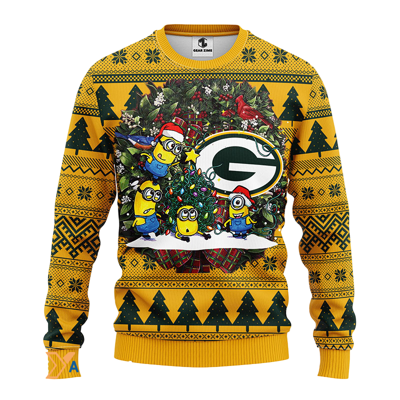 Ugly Christmas Sweater Green-Bay-Packers, Minion Green/Yellow