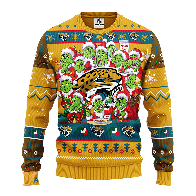 Ugly Christmas Sweater Jacksonville-Jaguars, 12 Grinch Green/Yellow/Brown