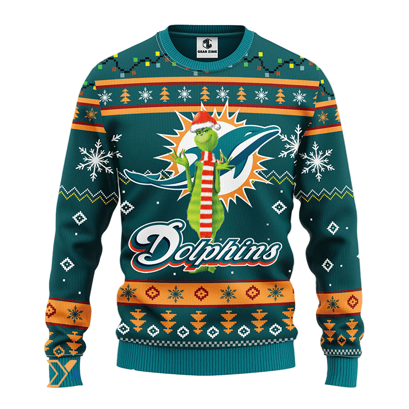 Ugly Christmas Sweater Miamidolphins, Grinch Green/Orange