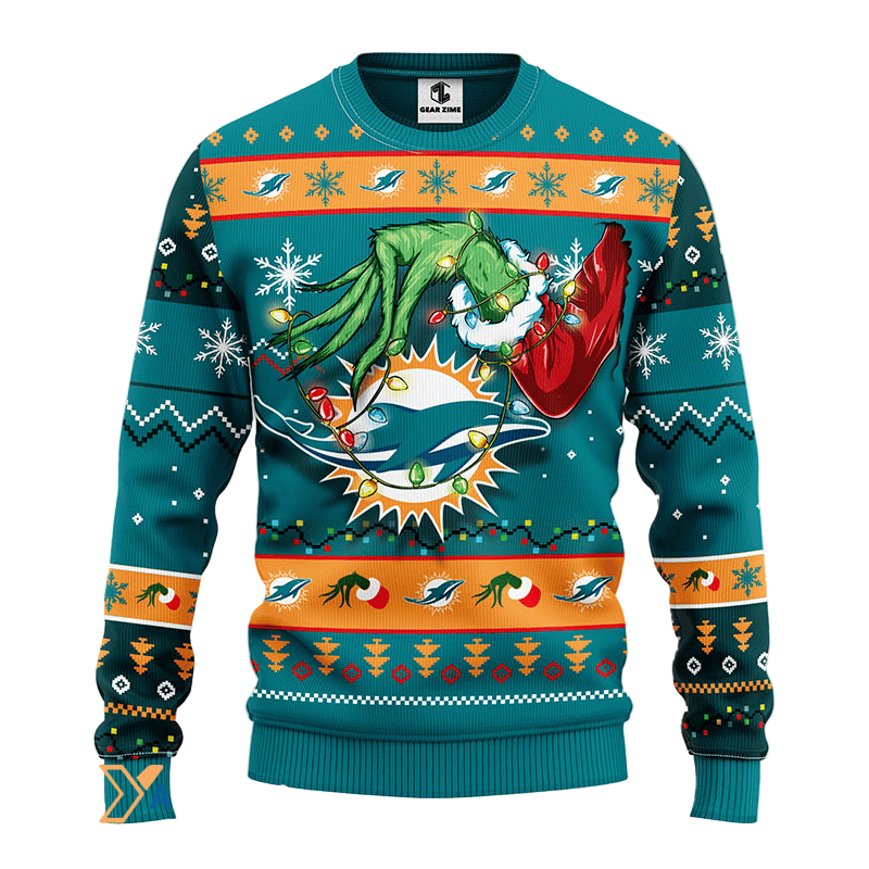 Ugly Christmas Sweater Miamidolphins, Grinch Light Green/Orange