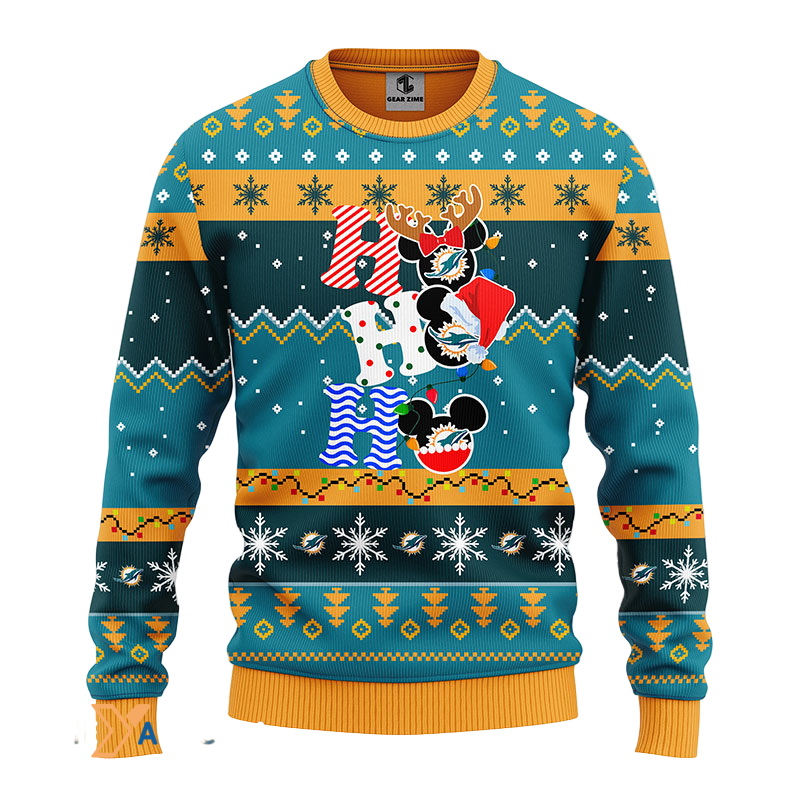 Ugly Christmas Sweater Miamidolphins, HoHoHo Graphics Mouse Green/Orange