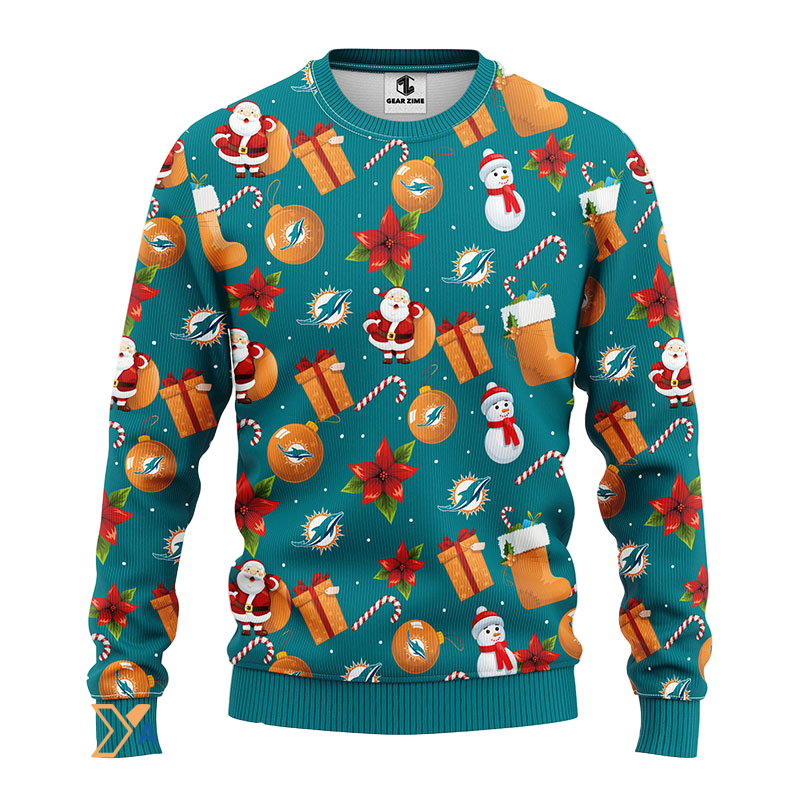 Ugly Christmas Sweater Miamidolphins, Santa Claus Snowman Green