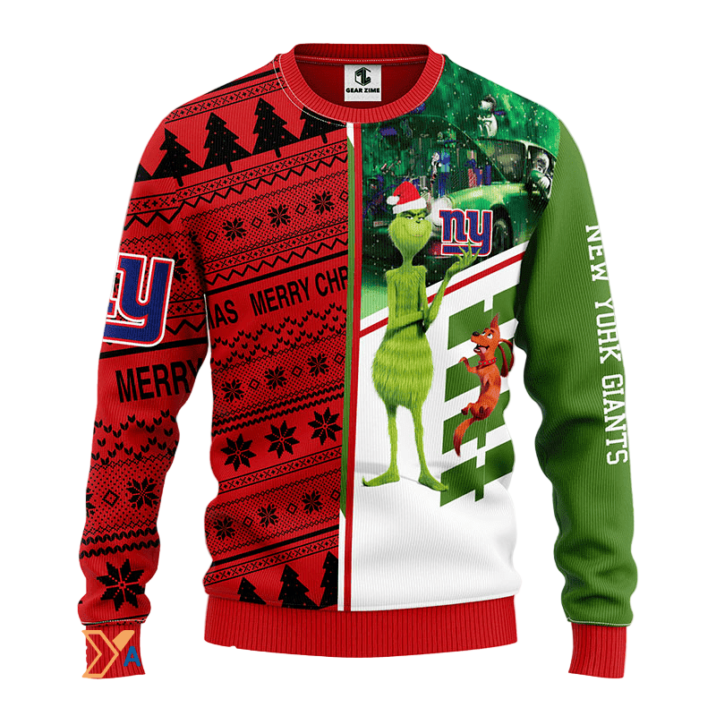 Ugly Christmas Sweater New-York-Giants, Grinch Scooby-Doo Red/Green/White