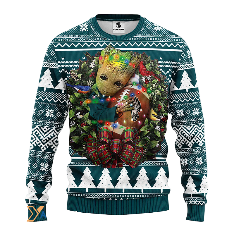 Ugly Christmas Sweater Philadelphia-Eagles, Graphic Tree Green/White