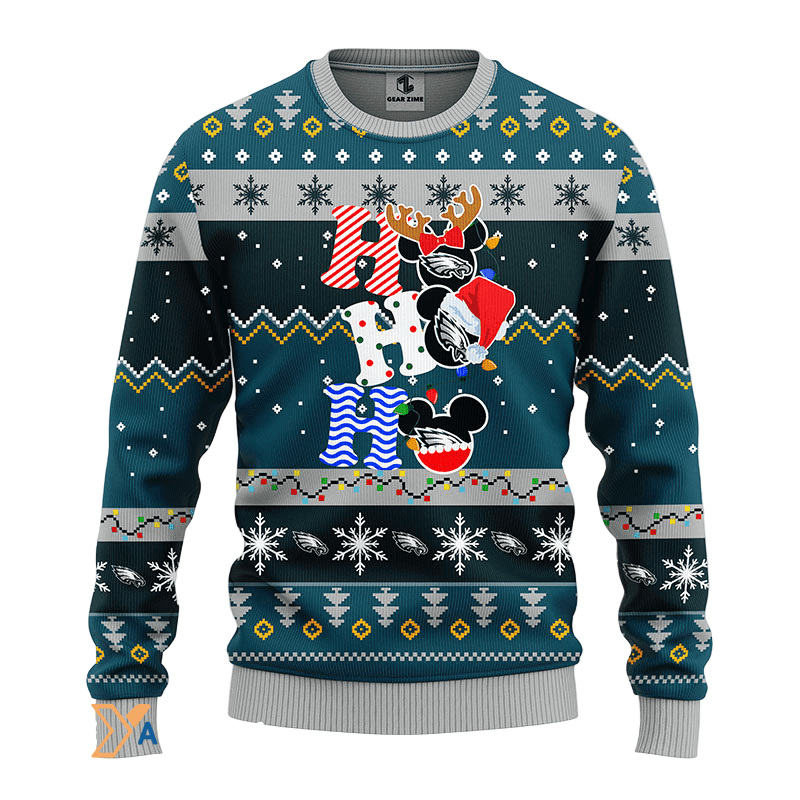 Ugly Christmas Sweater Philadelphia-Eagles, HoHoHo Graphics Mouse Green/Grey/Black