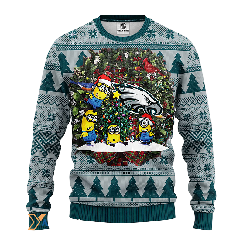 Ugly Christmas Sweater Philadelphia-Eagles, Minion Green/Grey