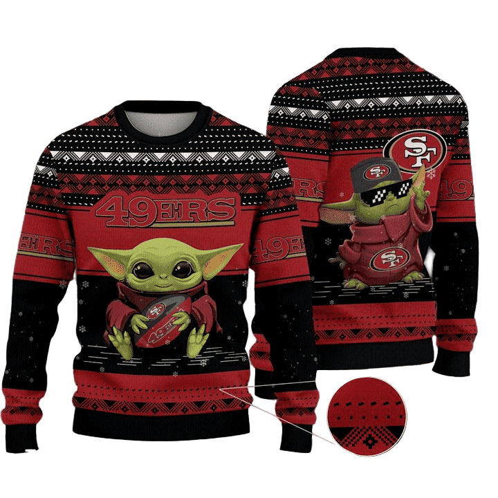 Ugly Christmas Sweater San-Francisco, Baby Yoda Red/Black