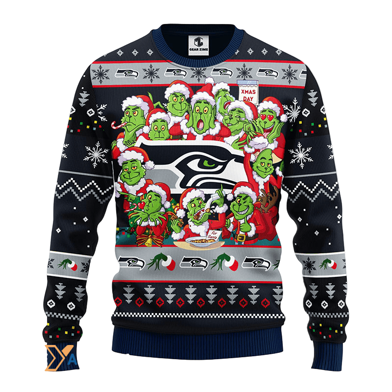 Ugly Christmas Sweater Seattle-Seahawks, 12 Grinch Black/Grey