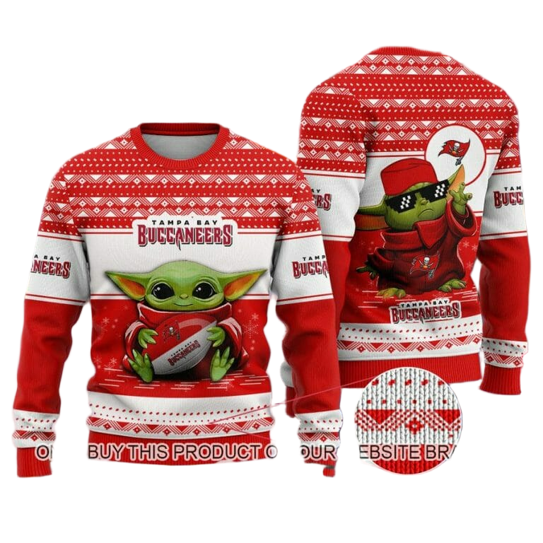 Ugly Christmas Sweater Tampa-Bay-Buccaneers, Baby Yoda Red/White
