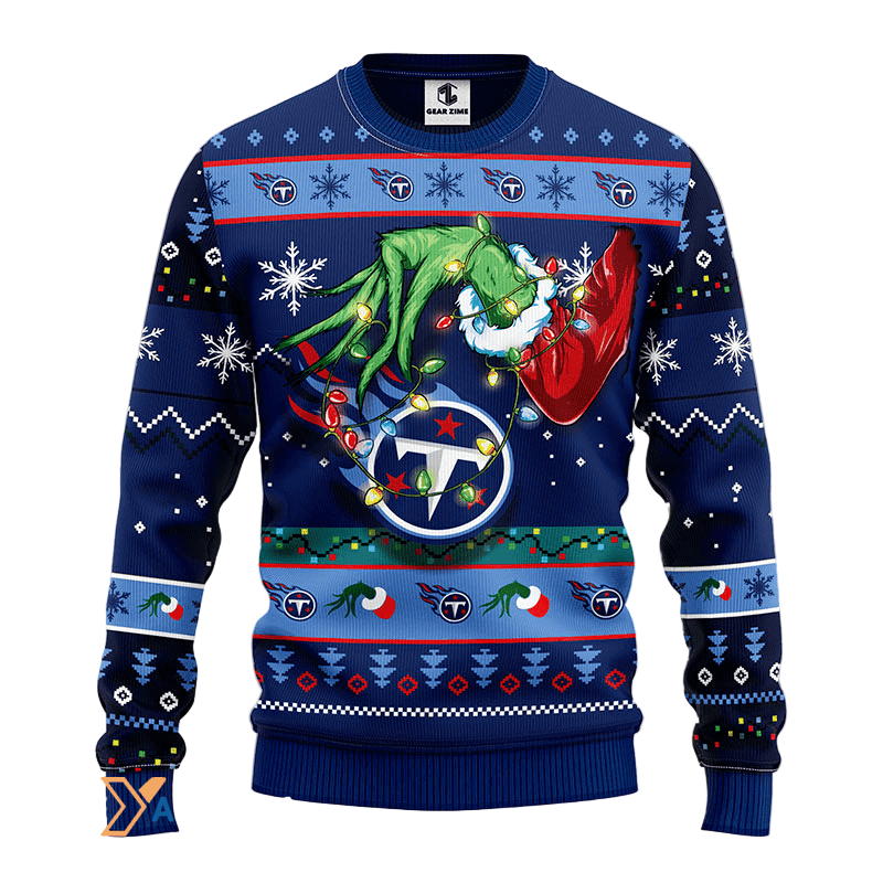 Ugly Christmas Sweater Tennessee-Titans, Grinch Christmas Dark Blue/Blue